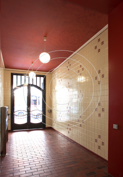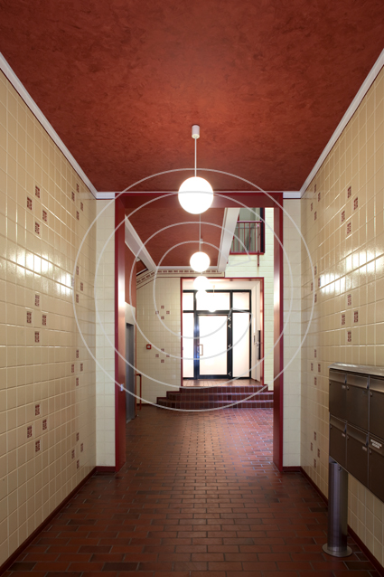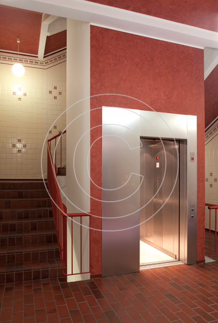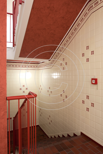 Das Gebäude gliedert sich in fünf weit gestellte Achsen, von denen die drei mittleren so elegant vorgezogen wurden, dass das giebelgeschmückte Mittelrisalit sich unübersehbar hervorhebt. Innen empfängt uns das komplett neu gestaltete Treppenhaus.