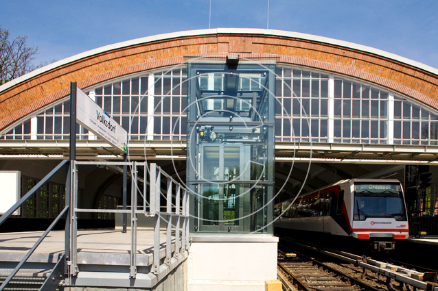 Zur besseren Erreichbarkeit, insbesondere für ältere und rollstuhlabhängige Men-schen, sowie für Fahrgäste mit Fahrrädern und Kinderwagen, wurden unter schwie-rigen technischen Bedingungen diese Aufzüge in die bestehende Haltestelle einge-passt. Durch die Transparenz der Aufzüge ist die Personensicherheit zusätzlich gewährleistet.