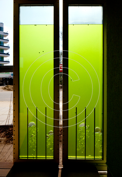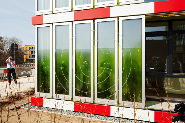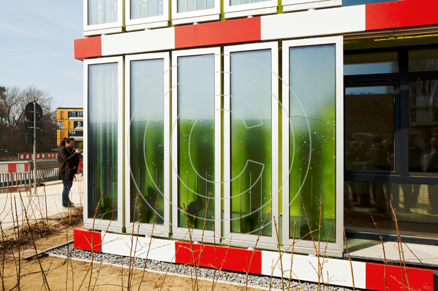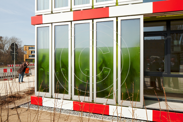 Die Zukunft des Wohnens wird präsentiert auf der Internationalen Bauausstellung in Wilhelmsburg mit einem Projekt zum Energie-Plus-Haus. Energiegewinnung mit Algen: In Glaselementen werden Mikroalgen gezüchtet, die durch Photosynthese Biomasse und Wärme produzieren, die im Gebäude genutzt werden können, Reaktoren dienen der Lichtsteuerung und Beschattung, dem Wärme-, Kälte- und Schallschutz.