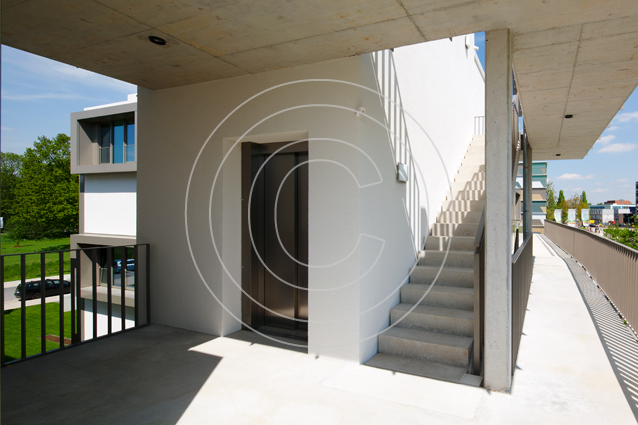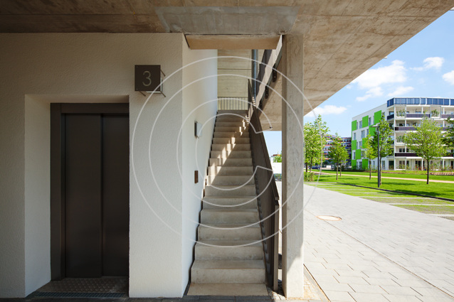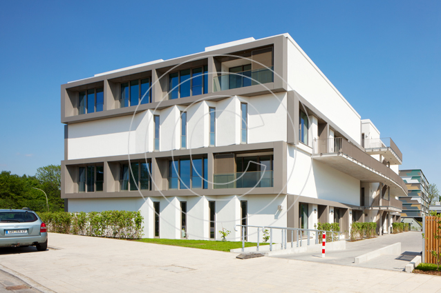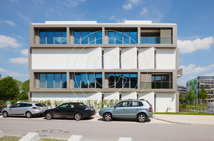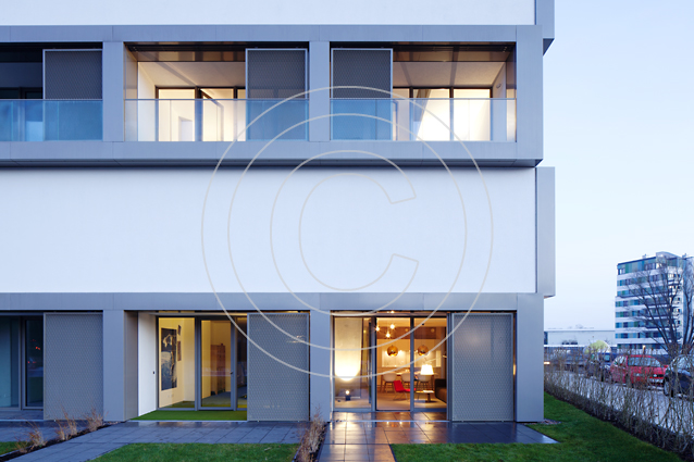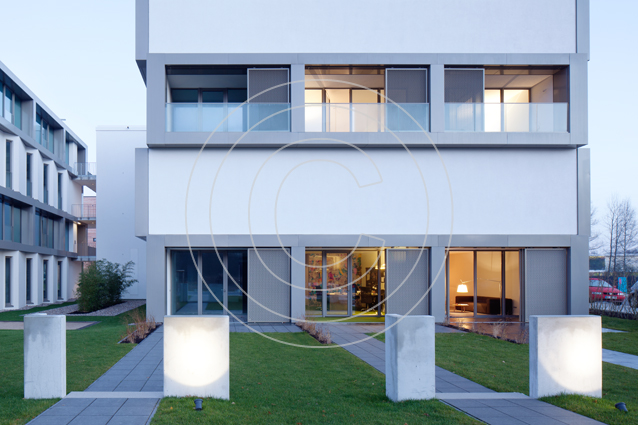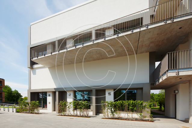 Die Grundidee des Gebäudes wird durch eine durchdachte Architektur mit neuartigen Grundrissen umgesetzt. Die Wohneinheiten, größtenteils Maisonetten, sind durch die Kombination aus einem Ost-West- und einem Nord-Süd-Modul in alle vier Himmelsrichtungen ausgerichtet. Dank dieser Bauweise ergeben sich pro Wohneinheit Blicke in alle Richtungen und damit vier spezifische Tageslichtsituationen, wie sie sonst nur in einem freistehenden Haus möglich sind. Loggien und Gärten schaffen die Verbindungen zum Freien. Eine Dachterrasse für die oberen Maisonetten sorgt für zusätzliche Ausblicke - beispielsweise auf den angrenzenden Inselpark.