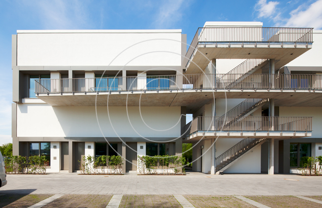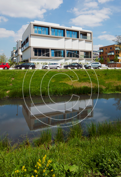 Gleich neben dem igs - Zentrum befindet sich das "Hybrid House". Es besteht aus zwei Baukörpern und basiert auf der Überlegung, dass für Wohnen und Arbeiten im Tagesverlauf unterschiedliche Lichtverhältnisse optimal sind. Das Hybrid House geht damit speziell auf die Bedürfnisse von Menschen ein, die phasenweise und zu unterschiedlichen Tageszeiten auch zu Hause, vom eigenen Büro oder Atelier aus arbeiten.